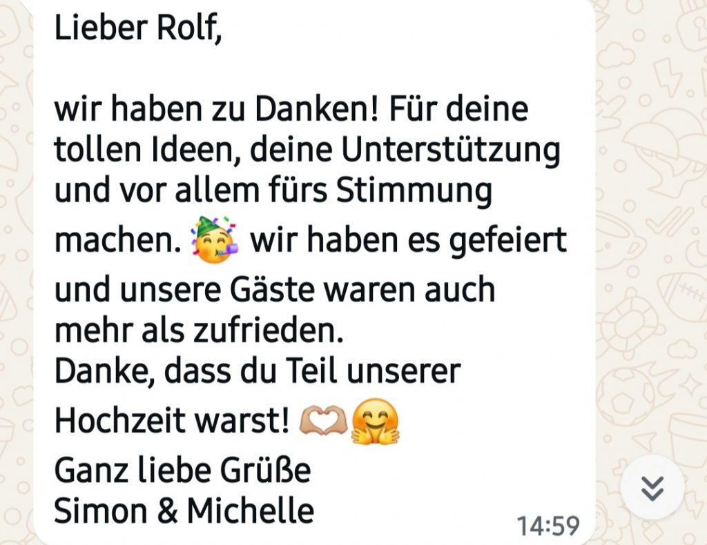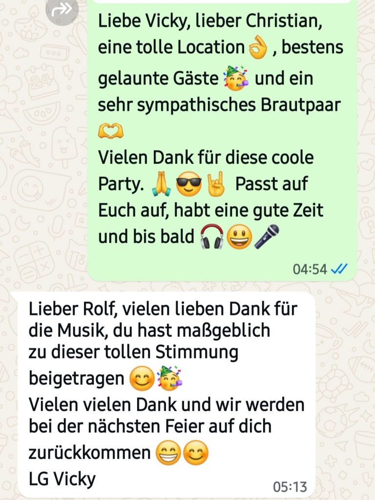 „Vielen Dank für diese tolle Messe“ sagt Euer HochzeitsDJ