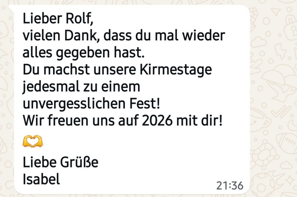 Ein super Progamm, das die Griether wieder auf die Beine gestellt haben. Wir freuen uns auf nächsten Samstag.